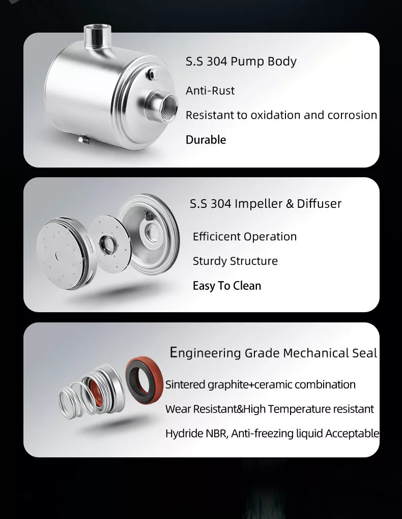 3. Maraming nalalaman mga aplikasyon: Kung kailangan mong mapalakas ang presyon ng tubig sa mga gusali, mga sistema ng patubig, o mga proseso ng pang -industriya, ang bomba na ito ay sapat na maraming nalalaman upang matugunan ang isang malawak na hanay ng mga pangangailangan nang madali.