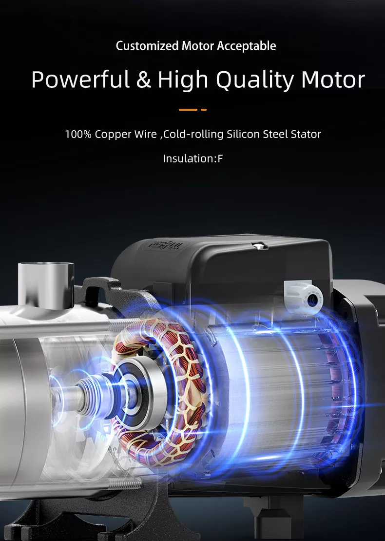 1. Pag -andar ng Multistage: Ipinagmamalaki ng aming bomba ang maraming mga impeller na nagtutulungan nang walang putol upang magbigay ng mataas na presyon at mga rate ng daloy, na ginagawang perpekto para sa hinihingi na mga kapaligiran kung saan mahalaga ang pare -pareho ang pagganap.