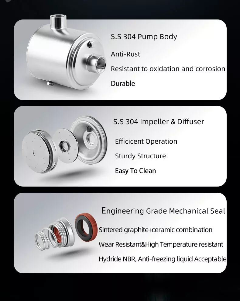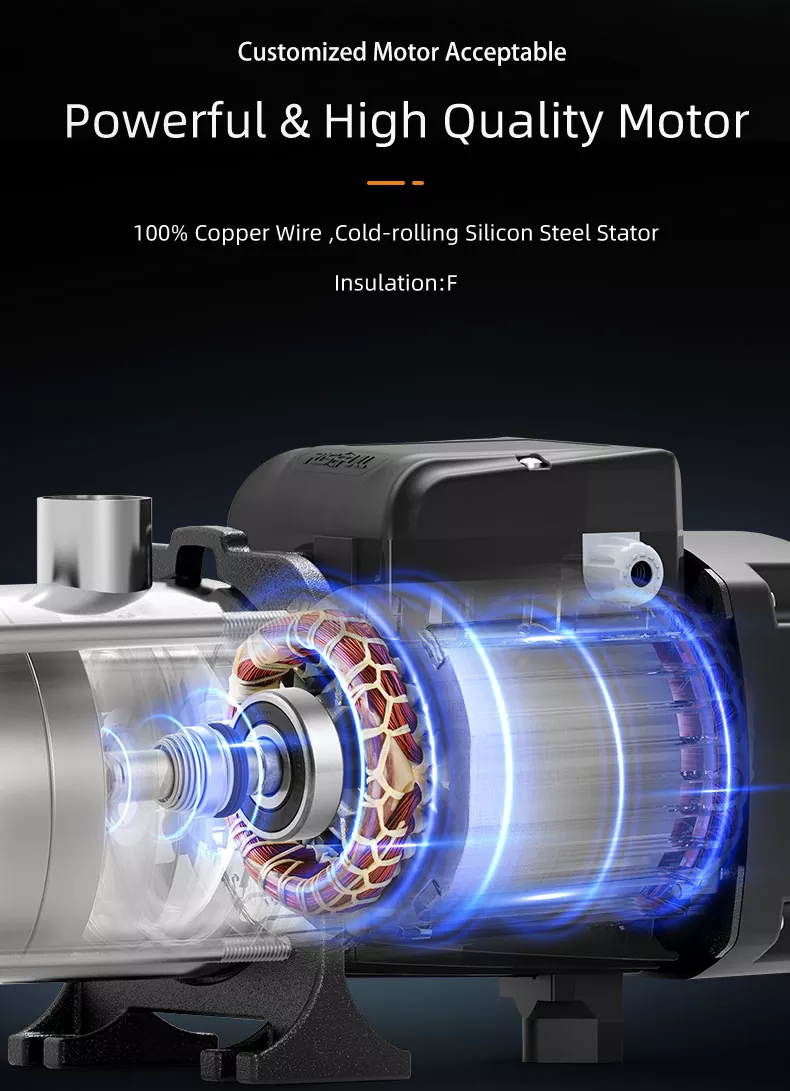 Versatile Application: Mula sa mga sistema ng tubig sa tirahan hanggang sa agrikultura na patubig at mga proseso ng pang -industriya, ang bomba na ito ay maraming nalalaman upang hawakan ang lahat. Ang output ng mataas na presyon nito ay ginagawang angkop para sa iba't ibang mga setting, na nagbibigay sa iyo ng isang maaasahang solusyon para sa iyong mga pangangailangan sa pumping.