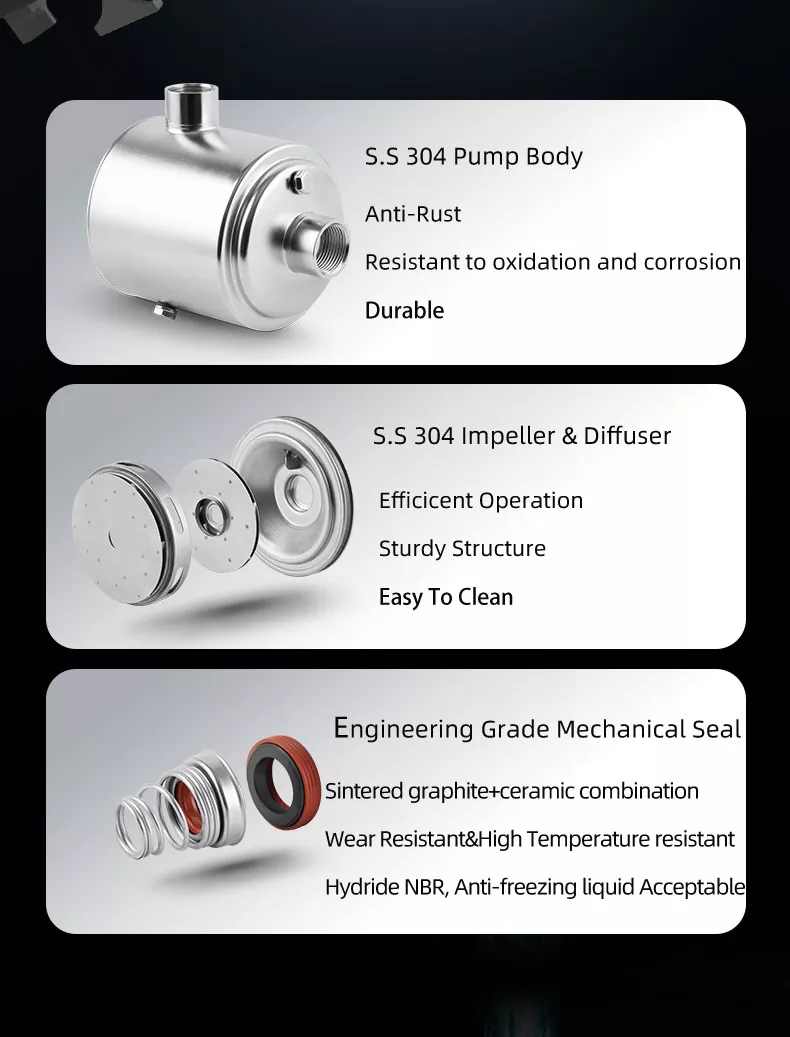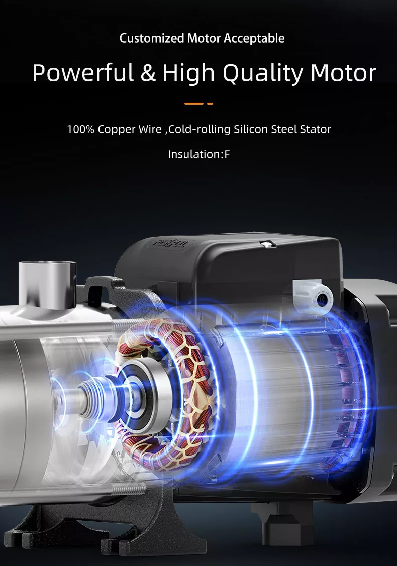Sa bawat yugto na nag -aambag sa pangkalahatang output ng presyon, masisiyahan ka sa isang matatag at malakas na daloy ng tubig tuwing kailangan mo ito. Mula sa pagtutubig ng iyong hardin hanggang sa pagpapatakbo ng maraming shower nang sabay -sabay, ang bomba na ito ay naghahatid ng isang maaasahan at pare -pareho na pagganap.