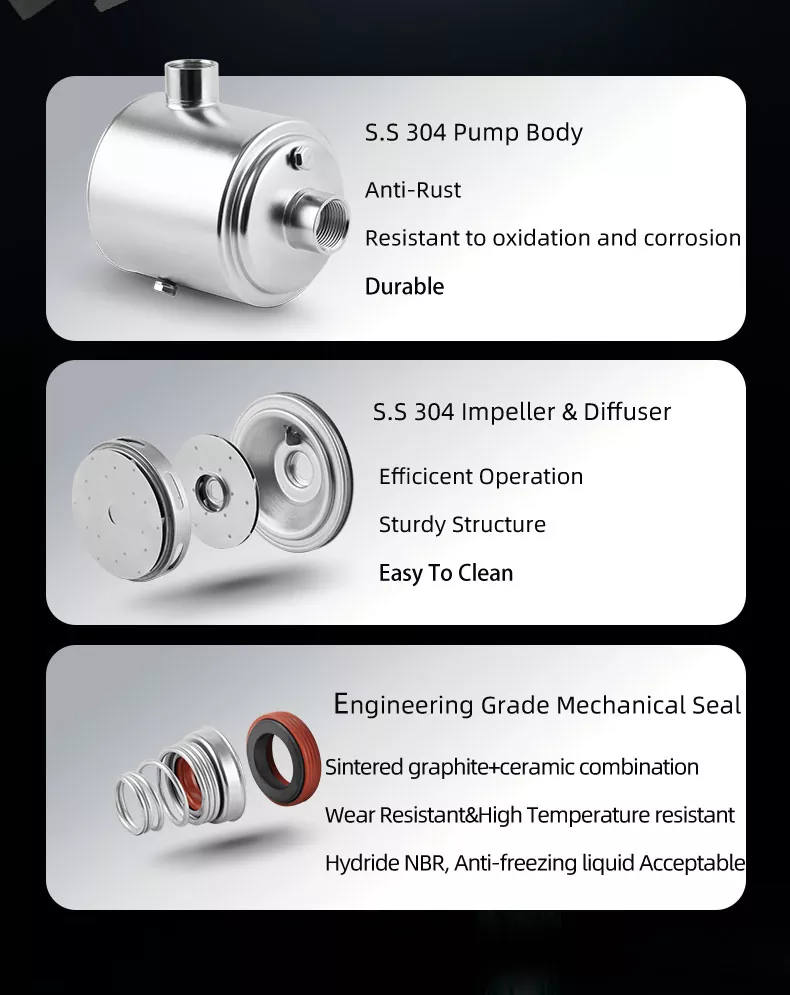 Itinayo hanggang sa huli, ang bomba na ito ay nagtatampok ng isang matatag na hindi kinakalawang na asero na konstruksyon na lumalaban sa kaagnasan at tinitiyak ang pangmatagalang tibay. Maaari kang umasa sa bomba na ito upang gumana nang maayos at mahusay, kahit na sa pinaka -hinihingi na mga kapaligiran.